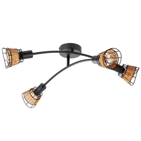 Großhandel 🎁 Nino Leuchten Deckenleuchte 4-flg. ESRA Schwarz, Draht-Rattan Schirme, 61340408 ⭐