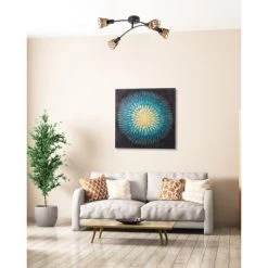 Dieser 4-flammige Deckenleuchte besticht durch ihre trendbewusste Optik und fungiert somit zum absoluten Blickfang in Ihrem Wohnbereich. Das Gehäuse der jeweiligen Lampenschirme weist als Basis ein filigranes Gittermuster auf, wodurch das Licht entsprechend hinausstrahlen kann. Im mittleren Bereich ist durch die feinen Metallstäbe ein ringförmiges Geflecht aus Rattan eingearbeitet, durch dessen dezente Lücken vereinzelte Lichtstrahlen hindurchschimmern und so zusätzlich interessante Licht- und Schaffeneffekte in der Umgebung entstehen lassen.