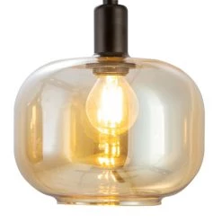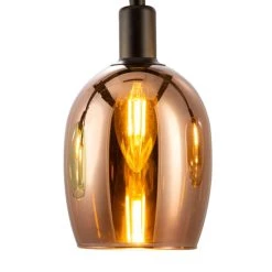 Diese 4-flammige Deckenleuchte wird aufgrund Ihres einzigartigen Designs zum stilvollen Hingucker in Ihrem Wohnbereich. Die vier Gläser unterscheiden sich sowohl in ihrer Farbe als auch in ihrer Form, sodass sich besonders interessante Lichteffekte ergeben. Die Farben Rauchgrau, Amber, Kupfer und Grün sind harmonisch aufeinander abgestimmt und lassen diese Leuchte in Kombination mit dem matt-schwarzem Gestell auch im ausgeschalteten Zustand sehr elegant erscheinen. Als besonders praktisch erweisen sich die beweglichen Gelenke der jeweiligen Gläser, die somit in jede gewünschte Position ausgerichtet werden können.