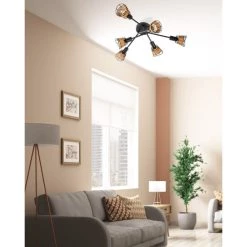 Diese schöne Deckenlampe leuchtet dank der sechs separaten Leuchtköpfe Ihren Raum perfekt aus. Mit außergewöhnlichen Materialmix aus Metall & Rattan ist diese Lampe einen echten Hingucker. Schutzart (IP-Code): 20, Dimmen möglich: Nein, Schutzklasse: I, Anzahl der Flammen: 6-flammig, Leuchtenart: Hochvoltleuchte, Anzahl der empfohlenen Leuchtmittel: 6, Empfohlener Leuchtensockel: E14, Empfohlene Nennleistung: 40 W, Smarthome-fähig: Nein.