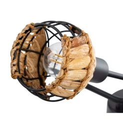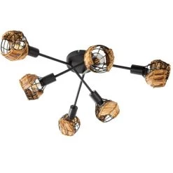 Diese schöne Deckenlampe leuchtet dank der sechs separaten Leuchtköpfe Ihren Raum perfekt aus. Mit außergewöhnlichen Materialmix aus Metall & Rattan ist diese Lampe einen echten Hingucker. Grasgeflecht, natürlich gewachsen, Metall schwarz; B 60 cm, Schirm Ø 10 cm; für 6x E14, max. 25W; EAN 4048194073215.