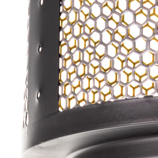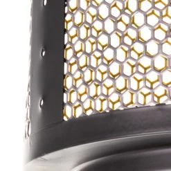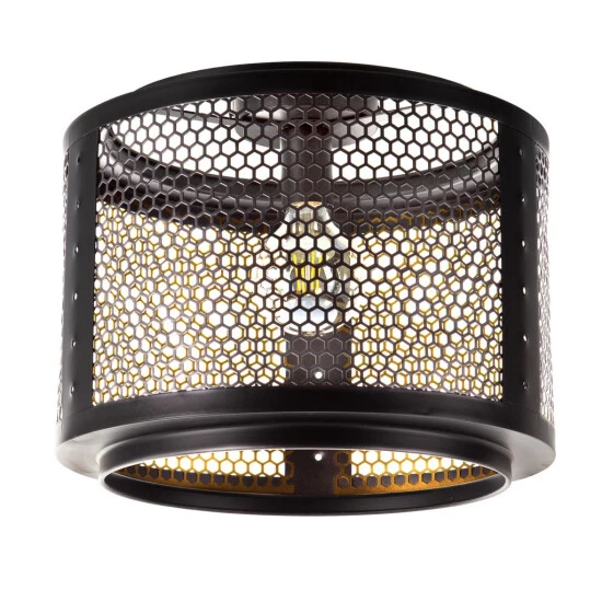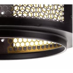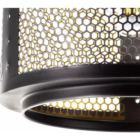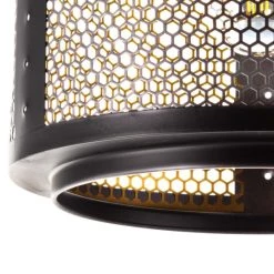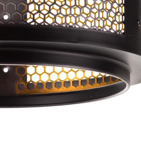 Diese moderne Deckenleuchte aus mattiertem Metall zeichnet sich durch den oval geformten Lampenschirm im trendigen Käfig-Look aus. Der Innenraum ist in einem angenehmen Goldton gehalten, was der Leuchte einen entsprechend edlen Charakter verleiht. Das aufwendig gearbeiteten Ausstanzmuster aus kleinen Sechsecken macht diese Leuchte vor allem im eingeschalteten Zustand zum optischen Highlight und sorgt in seiner Umgebung für besonders schöne Licht- und Schattenspiele.