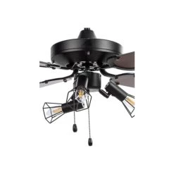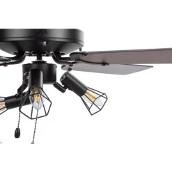 Um Ihr Zuhause auch an heißen Sommertagen angenehm und kühl zu halten ist dieser hochwertige Deckenventilator im Retro-Look mit drei modernen Spots eine Bereicherung für Ihre vier Wände. Sein volles Potenzial entfaltet der Ventilator vor allem in kleinen bis mittelgroßen Räumen. Anschalten lässt sich dieser über die sich an der Seite befindenden Zugschalter. Die Leuchte und der Ventilator lassen sich hier bequem separat anschalten. Dank der Rücklauffunktion Alle Rotorblätter sind zudem auf einer Seite anthrazit und auf der anderen in Eichefarben. So können Sie selbst entscheiden welche Farbkombination am besten zu Ihrer Möblierung passt. Die stilvollen Spots unter dem Ventilator bringen sich ideal in jede Einrichtung ein und lassen diesen zu Blickfänger werden.