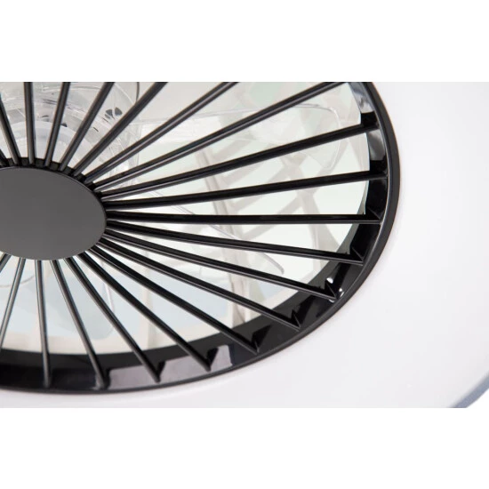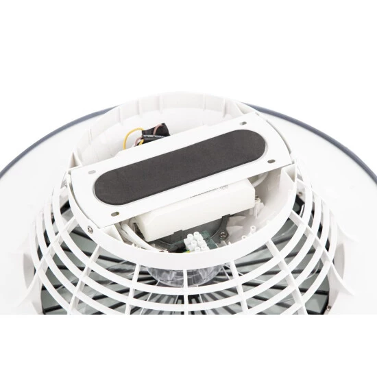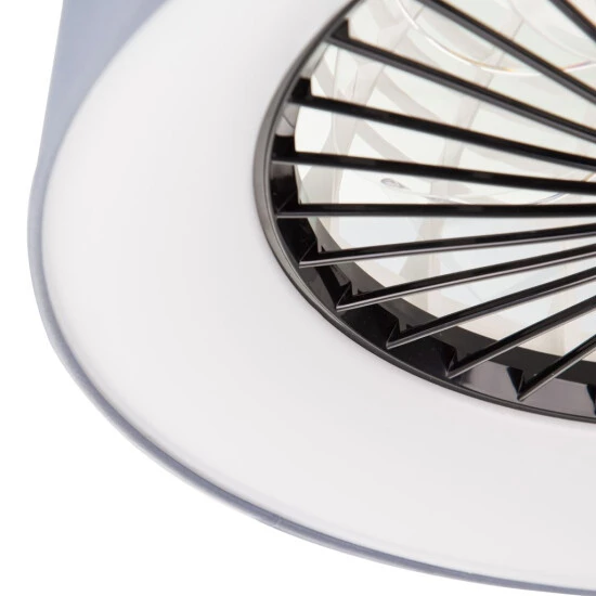 Um Ihr Zuhause auch an heißen Sommertagen angenehm und kühl zu halten ist dieser Deckenventilator ideal getarnt als Deckenleuchte eine Bereicherung für Ihre vier Wände. Dank den drei einstellbaren Geschwindigkeiten, die über die im Lieferumfang enthaltene Fernbedienung gesteuert werden kann, bietet ihnen dieser eine angenehmen Brise, bis hin zu einem spürbaren Luftzug. Sein volles Potenzial entfaltet der Ventilator vor allem in kleinen bis mittelgroßen Räumen. Die Rotorblätter verstecken sich hinter einer weißen Kunststoffabdeckung. An dieser befindet sich das Highlight, die integrierte LED-Leuchte am äußeren Rand mit einem grauen Stoffschirm. Nicht nur lässt sich die Leuchte ebenfalls über die Fernbedienung dimmen, sondern auch von einem gemütlichen warmweißen, bis hin zu einem kaltweißen Licht umschalten.