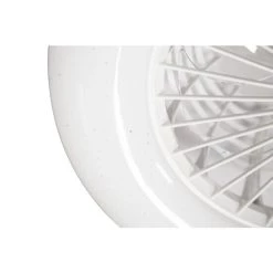 Um Ihr Zuhause auch an heißen Sommertagen angenehm und kühl zu halten ist dieser Deckenventilator ideal getarnt als Deckenleuchte eine Bereicherung für Ihre vier Wände. Dank den drei einstellbaren Geschwindigkeiten, die über die im Lieferumfang enthaltene Fernbedienung gesteuert werden kann, bietet ihnen dieser eine angenehmen Brise, bis hin zu einem spürbaren Luftzug. Sein volles Potenzial entfaltet der Ventilator vor allem in kleinen bis mittelgroßen Räumen. Die Rotorblätter verstecken sich hinter einer weißen Kunststoffabdeckung. An dieser befindet sich das Highlight, die integrierte LED-Leuchte am äußeren Rand mit Sternenhimmeloptik. Nicht nur lässt sich die Leuchte ebenfalls über die Fernbedienung dimmen, sondern auch von einem gemütlichen warmweißen, bis hin zu einem kaltweißen Licht umschalten.
