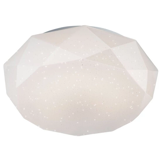 Die Deckenleuchte aus der Serie Diamond in Kunststoff opal weiß glänzend mit Sternenhimmeleffekt verschafft durch ihre stimmungsvolle Beleuchtung eine angenehme Wohlfühlatmosphäre in Ihrem Zuhause. Die Leuchte hat das gewisse Etwas, so werten Sie jeden Raum optisch auf und verleihen ihm ein entsprechendes Flair. Die LEDŽs sind nicht nur wahre Lichtkünstler, sondern bieten zusätzlich ein langlebiges Leuchtvergnügen.