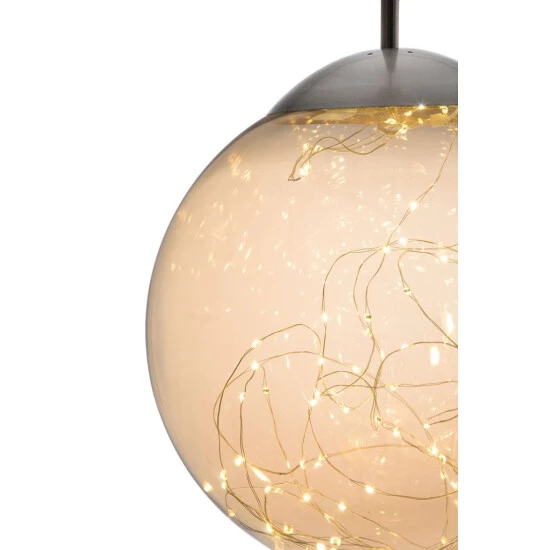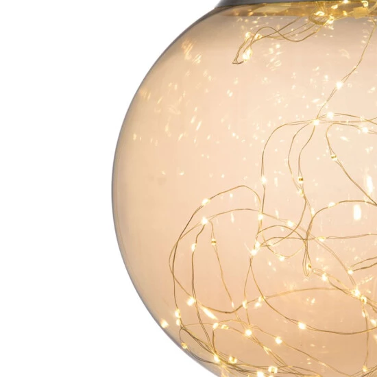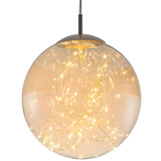 Das Design mit der Lichterkette im Inneren ist ein wahrer Blickfang. Besonders gut kommt die Hängeleuchte über dem Wohn- oder Esszimmertisch zur Geltung.
