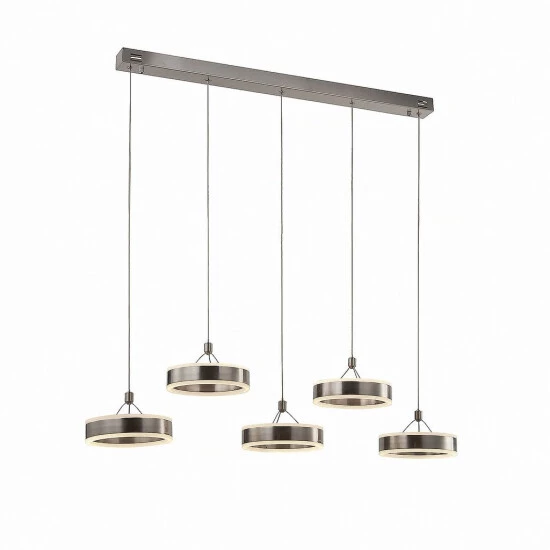 In der Höhe verstellbar und 3-fach schaltbar, das ist die Pendelleuchte Ring. Matt nickelfarben und mit weißen Plexi-Schirm lässt sich die Leuchte in nahezu jeden Wohnbereich integrieren. 5-flammig sorgt die attraktive Pendellampe für eine stimmungsvolle Beleuchtung.