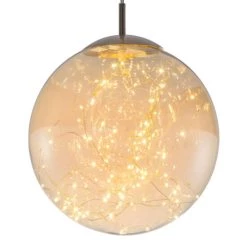 Das Design mit der Lichterkette im Inneren ist ein wahrer Blickfang. Besonders gut kommt die Hängeleuchte über dem Wohn- oder Esszimmertisch zur Geltung.