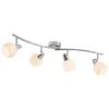 Mit der Leuchtenserie Doxy setzen Sie einen neuen Trend. Modern und edel ist das Design. Ein Hingucker sind die Lampenschirme aus weißen Diamond-Glas. In Kombination mit dem chromfarbenen Metall fügt sich diese Lampe nahezu in jedem Wohnraum ein. Der dreiflammige Spot ist vielseitig einsetzbar. Mit dieser Deckenbeleuchtung sorgen Sie für eine harmonische Beleuchtung in Ihrem Zuhause.