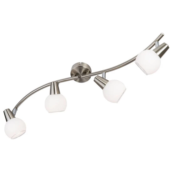 Der vierflammige LED-Spot aus der Serie Dascha in Nickel und Glas matt weiß verschafft durch seine stimmungsvolle Beleuchtung eine angenehme Wohlfühlatmosphäre in Ihrem Zuhause. Der Spot hat das gewisse Etwas, so werten Sie jeden Raum optisch auf und verleihen ihm ein entsprechendes Flair. Die LEDŽs sind nicht nur wahre Lichtkünstler, sondern bieten zusätzlich ein langlebiges Leuchtvergnügen.