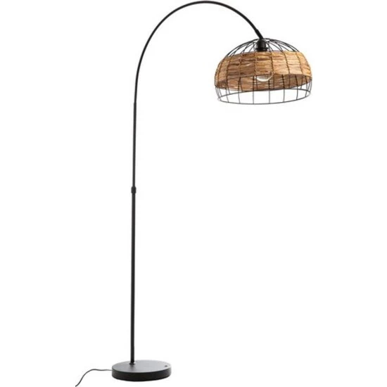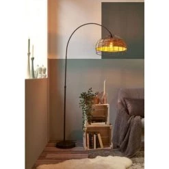 Coupon 🌟 Nino Leuchten Nino Bogenleuchte Panama Metall Schwarz Gras Geflecht Modern 1 Flamig Verstellbar ✔️