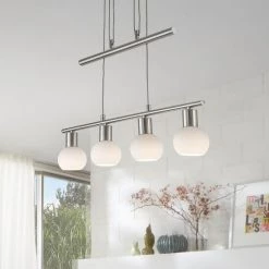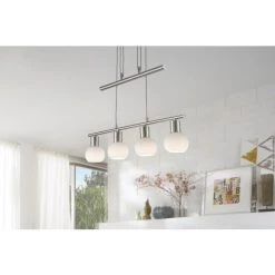 Die moderne, 4-flammige Loxy-LED-Jojo-Balkenleuchte aus Nickel und Glas in opal matt weiss passt optimal über einem Esszimmertisch. Sie ist n der Höhe verstellbar und überzeugt mit einem formschönen Design. Die LEDŽs sind nicht nur wahre Lichtkünstler, sondern bieten zusätzlich ein langlebiges Leuchtvergnügen. Produktdetails: LED Jojo Balkenleuchte 4-flammig Nickel Glas opal matt weiss höhenverstellbar 100-160 cm Leuchte ist dimmbar schaltbar über Wandschalter ca. Maße: Breite: 60 cm Höhe: 100 cm Leuchtmittel inklusive: Ja – inkl. 4x E14, 3W, LED Leuchtmittel technische Details: Lumen: 300 Kelvin: 3000 Energieeffizienzklasse: F Schutzklasse: 1 Lieferumfang: 1x LED Jojo Balkenleuchte 4-flammig Loxy Eventuell vorhandene Dekorationsartikel sind nicht im Lieferumfang enthalten.