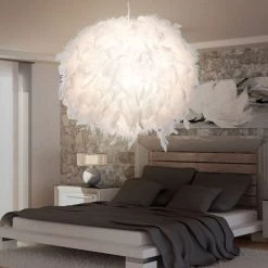 Über einen Wandschalter kannst Du Deine neue Federleuchte ganz einfach ein- und ausschalten. Das Leuchtmittel musst Du Dir für die Hängeleuchte jedoch noch dazu bestellt. Durch die Federn am Lampenschirm scheint das Licht warmweiß in den Raum und zaubert Dir eine besonders wohlige Atmosphäre. Die Pendelleuchte Ducky ist daher wie gemacht für Dein Schlaf- oder Wohnzimmer, in denen Du Dich entspannen und wohlfühlen sollst. Die Federlampe gibt es übrigens auch noch mit einem Durchmesser von 30 und 60 cm sowie als Stehlampe und Tischleuchte. Hol Dir jetzt die flauschige Kugel zu Dir nach Hause!