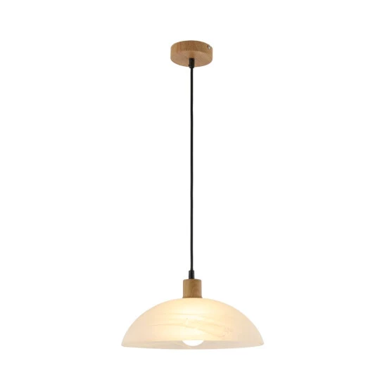 Klassisch, aber dennoch modern ist die Leuchtenserie Daytona. Das helle eichefarbene Design der Abdeckkappen in Kombination mit dem alabasterweißfarbenen Glas liegt im Trend. Die einflammige Pendelleuchte sorgt nahezu in jedem Wohnbereich für eine stilvolle Beleuchtung und lässt sich mit einem Durchmesser von ca. 30cm auch über kleinere Tische perfekt anbringen.