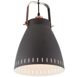 Makky, die Leuchtenserie mit ausgefallen Design erinnert ein wenig an die Filmzeiten in Hollywood. Aus Metall gefertigt und in der Farbgebung Schwarz ist die Deckenbeleuchtung ein wahrer Blickfang. Kupferfarbene Details wie Schrauben und Kappe unterstreichen den edlen Charakter der trendigen Pendelleuchte. Die Leuchte ist vielseitg einsetzbar und macht nahezu in jedem Raum eine gute Figur.