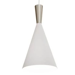 Matze, die stylische Pendelleuchte liegt im Trend und sorgt für eine angenehme Beleuchtung in Ihrem Wohnbereich. Der weiße Lampenschirm mit nickelfarbenen Detail ist einfach ein Hingucker. Ob über dem Tisch oder als Deckenbeleuchtung, mit der einflammigen Pendelleuchte geben Sie Ihrem Wohnbereich eine stimmungsvolle Atmosphäre.