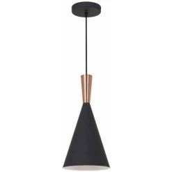 Matze, die stylische Pendelleuchte liegt im Trend und sorgt für eine angenehme Beleuchtung in Ihrem Wohnbereich. Der schwarze Lampenschirm mit kupferfarbenen Detail ist einfach ein Hingucker. Ob über dem Tisch oder als Deckenbeleuchtung, mit der einflammigen Pendelleuchte geben Sie Ihrem Wohnbereich eine stimmungsvolle Atmopshäre.