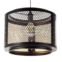Diese moderne & industrielle Pendelleuchte überzeugt sowohl mit seinem Gitter-Look, welche in jedem Raum perfekt hineinpasst, als auch mit der praktischen Höhenverstellbarkeit. Ein Spiel die Lichter in jedem Raum, dafür sorgt der Gitter-Look dieser Lampe. Metall Schwarz, innen Gold für 1 x E27, max. 40W D: 40cm, H: 34cm, H.max: 150 cm Dimmen möglich: Nein Schutzklasse: I Anzahl der Flammen: 1-flammig Leuchtenart: Hochvoltleuchte Empfohlener Leuchtensockel: E27 Empfohlene Nennleistung: 40 W Smarthome-fähig: Nein
