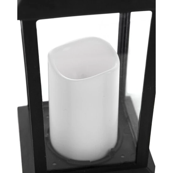 Diese handliche Außenlaterne überzeugt durch ihr klassisches Design und sorgt für ein besonders stimmungsvolles Licht in ihrem Außenbereich. Die Laterne ist aus schwarzem Kunststoff gefertigt und an den Seiten mit Klarglas verkleidet, sodass der Blick auf das Leuchtmittel im Inneren komplett frei ist. Die Lichtquelle in der Mitte der Leuchte wird durch eine LED-Kerze simuliert: Das warmweiße Licht, das sogar etwas flackert, lässt es so aussehen, als würde tatsächlich eine echte Kerze im Inneren leuchten und schafft somit eine besonders gemütliche Atmosphäre. Dank des hochwertigen Solarmoduls an der Oberseite läd sich die Leuchte selbstständig während des Tages im Sonnenlicht auf und schaltet sich bei Dämmerung automatisch ein.