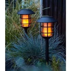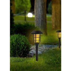 Die Solarleuchte FANO ist ein praktisches Dreier-Set zum Beleuchten von Wegen und Pfaden auf Ihrem Grundstück oder um eine akzentreiche Beleuchtung in Ihrem Außenbereich zu setzen. Das klassiche Design der Laternen lässt sich in jeglichen Außenbereich integrieren und dient in jedem Fall als funktionaler sowie stimmungsvoller Lichtspender. Mittels integrierten Erdspieß lassen sich die Solarlampen besonders unkompliziert in den Boden stecken und jederzeit Umplatzieren um eine optimale Beleuchtung zu erreichen. Jede Kunststoff-Laterne verfügt über ein LED-Leuchtelement mit Flackereffekt, wodurch der Eindruck entsteht, dass im Inneren des Gehäuses tatsächlich eine kleine Flamme wie bei einer Fackel lodert. Dank Solarmodulen und wiederaufladbarer Batterien versorgen sich die Leuchten selbst mit Strom und sind daher nicht auf externe Stromquellen angewiesen.
