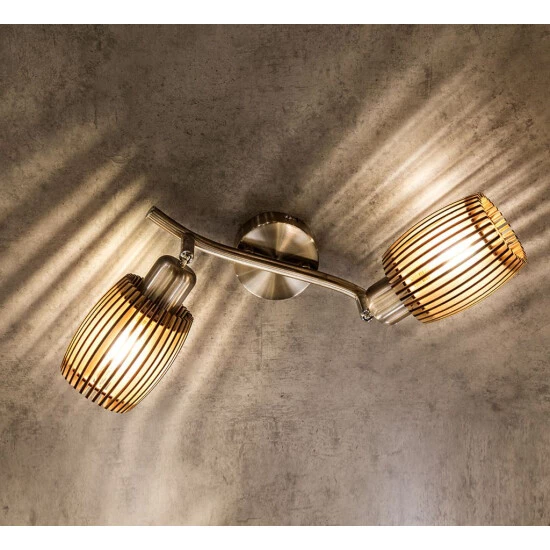Modern und attraktiv ist der 2-flammige Spot Parkey. Die eichefarbenen Lampenschirme sorgen für eine stimmungsvolle Beleuchtung in Ihrem Zuhause. Ein Highlight ist hier der Schatteneffekt, den die eingeschaltete Lampe verbreitet. Sie möchten den Lichteinfall verändern? Kein Problem, die Spots sind schwenkbar. Setzen Sie mit Parkey besondere Effekte und genießen Sie die stimmungsvolle Beleuchtung, die Ihnen geboten wird.