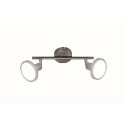 Diese praktische und moderne Spot-Leuchte Neo von Nino Leuchten überzeugt nicht nur durch das schlichte & moderne Chrom-Look, sondern auch mit seiner praktischen neigbaren Hals um jeden Bereich perfekt zu erstrahlen. Material: Metall Farbe: Nickel matt Spot ist schwenkbar schaltbar über Wandschalter nicht für den Nassraum geeignet Leuchtmittel ist wechselbar ca. Maße: Länge: 27,5cm Leuchtmittel inklusive: ja – inkl. 2x GU10, 5 Watt technische Details: Energieeffizienzklasse: G Schutzklasse: 1 Fassung: GU10 400 Lumen 3000 Kelvin Lieferumfang: 1x LED Deckenspot Neo – 2-flammig Eventuell abgebildete Dekorationsartikel, Beleuchtungen, HiFi-Geräte oder ähnliches sind nicht im Lieferumfang enthalten.