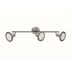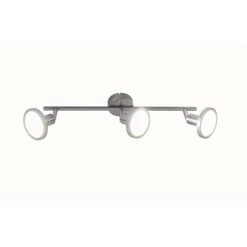 Diese praktische und moderne Spot-Leuchte Neo von Nino Leuchten überzeugt nicht nur durch das schlichte & moderne Chrom-Look, sondern auch mit seiner praktischen neigbaren Hals um jeden Bereich perfekt zu erstrahlen. Material: Metall Farbe: Nickel matt Spot ist schwenkbar schaltbar über Wandschalter nicht für den Nassraum geeignet Leuchtmittel ist wechselbar ca. Maße: Länge: 47,5cm Leuchtmittel inklusive: ja – inkl. 3x GU10, 5 Watt technische Details: Energieeffizienzklasse: G Schutzklasse: 1 Fassung: GU10 400 Lumen 3000 Kelvin Lieferumfang: 1x LED Deckenspot Neo – 3-flammig Eventuell abgebildete Dekorationsartikel, Beleuchtungen, HiFi-Geräte oder ähnliches sind nicht im Lieferumfang enthalten.