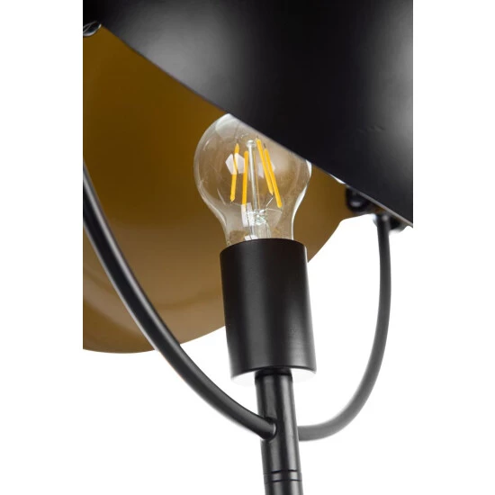 Diese einzigartige Stehleuchte besticht sowohl durch ihr extravagantes Design als auch durch eine flexible Gestaltung des Beleuchtungsgrades. Die trendige Kombination aus matt-schwarzer Lackierung außen und goldenem Innenfinish eignet sich ausgesprochen gut für moderne Einrichtungsstile. Ein besonderes Highlight im Design bietet der in sich geteilte Lampenschirm, wodurch sich die Lichtquelle ganz individuell in Szene setzen lässt: So kann der Lampenschirm beispielsweise zu einer geschlossenen Kuppel zusammengefügt oder aber weit geöffnet werden, um das Licht an mehreren Seiten in den Raum strahlen zu lassen. Mit dieser Leuchte lässt sich die Intensität der Beleuchtung jederzeit flexibel ändern, um den Raum entweder ausreichend zu erhellen oder aber ein gemütliches Ambiente zu schaffen.
