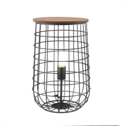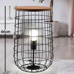 Dieser stylische Lampentisch ergänzt Ihr Zuhause perfekt. Er begeistert mit seinem modernen Stil und seinen praktischen Eigenschaften. Als Bestelltisch mit integrierter Beleuchtung erfüllt er zwei Funktionen gleichzeitig. Seine Kombination aus Holzelementen und dunklem Metallgitter liegt total im Trend. Mit einem Wippschalter lässt sich die Lampe leicht ein- und ausschalten. Egal ob im Wohnzimmer, Esszimmer oder im Flur – der Lampentisch passt in nahezu jeden Wohnraum und sorgt für einen echten Hingucker.
