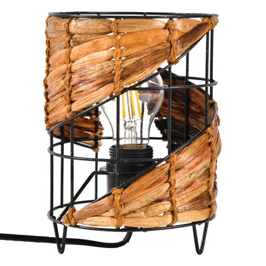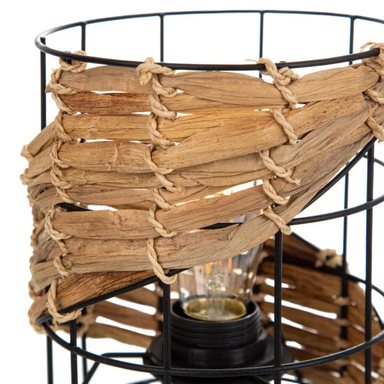 Diese dekorative Tischleuchte mit natürlichem Charme eignet sich ideal für naturverbundene Raumkonzepte. Der zylinderförmige Drahtschirm weist rundum ein filigranes Gittermuster auf, wodurch das Licht entsprechend hinausstrahlen kann. Ihre natürliche Optik erhält die Leuchte durch das spiralförmig eingeflochtene Grasgeflecht, das in sich unterschiedliche Farbverläufe aufweist und jede Leuchte somit einzigartig macht. Zusätzliche dezente Zwischenräume im Geflecht lassen hier vereinzelt Lichtstrahlen effektvoll hindurchschimmern und tragen zu einer besonders gemütlichen Atmosphäre bei. Allgemein sind Tischleuchten, wie diese, eine praktische Lichtquelle und sorgen für punktgenaue Beleuchtung an Ort und Stelle.