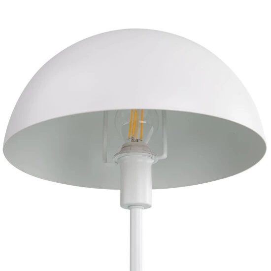Diese vielfältige Tischleuchte im klassischen Design lässt sich durch die zurückhaltende Farbgebung in nahezu jedes Interieur integrieren. Die Lichtquelle ist umgeben von einem lichtundurchlässigen weißen Metallschirm, welches das Licht in Richtung Boden leitet, um für eine angenehme indirekte Beleuchtung zu sorgen. Das dezente Metallgestell bildet dazu eine optisch harmonische Gesamteinheit. Anschalten lässt sich die Leuchte über einen Kippschalter am Netzwerkstecker. Diese Leuchte eignet sich somit ausgezeichnet als stimmungsvolle Zusatzbeleuchtung bspw. Im Flur, auf einem Beistelltisch oder auch als Nachttischleuchte.
