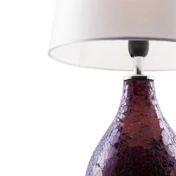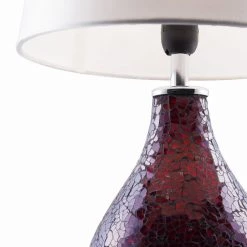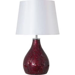 Die Tischleuchte Susa sorgt für gemütliche Beleuchtung in Ihrem Zuhause. Das gelungene Design aus rotem Mosaikfuß und weißem Lampenschirm ist edel und lässt sich gut mit bereits vorhandenen Möbelstücken kombinieren. Die Bedienbarkeit mittels Schnurschalter ist denkbar einfach. Verwenden Sie die Tischleuchte einzeln oder in Verbindung mit bereits vorhandenem Licht und genießen Sie die stimmungsvolle Beleuchtung.