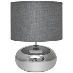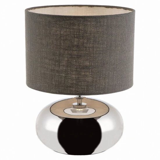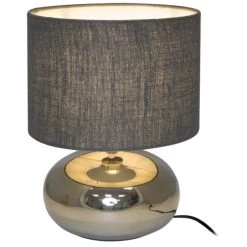 Edel und attraktiv präsentiert sich die Tischleuchte Zoe. Der chromfarbene Keramikfuß in Kombinatiom mit dem grauen Webstoffschirm liegt im Trend. Mittels Schnurschalter ist die Bedienbarkeit denkbar einfach und schnell sorgen Sie für eine gemütliche Atmosphäre in Ihrem Wohnbereich. Setzen Sie mit der Tischleuchte Zoe einen Akzent.