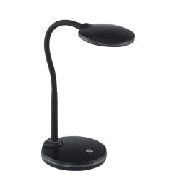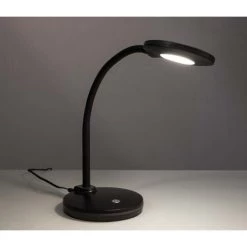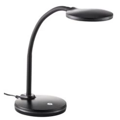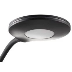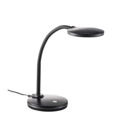 Holen Sie sich mit der LED-Tischleuchte Carmen puristisches Design und Modernität in Ihr Zuhause. Die schwarze Lampe besteht aus einem runden Sockel und einem flachen, runden Spot, die über einen Flexarm miteinander verbunden sind. Besonders schön kommt die moderne LED-Tischlampe auf einem Sideboard im Wohnraum oder Ihrem Nachtschrank zur Geltung, wo Sie das Modell wunderbar mit anderen dekorativen Wohnaccessoires arrangieren. 1-flg. LED Tischleuchte, Nachbildung: Kunststoff schwarz, Höhe: 32 cm, Durchmesser (Fuß): rund ca. 13 cm, Durchmesser (Spot): rund ca. 10,5 cm mit Flexarm, Lampenfassung: SMD, Schaltertyp: Nein, Schutzklasse 2 ohne Deko, ohne Beimöbel, Material: Kunststoff