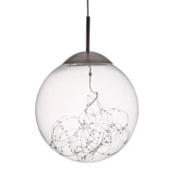 Diese Hängeleuchte ist ein echter Hingucker. Ihre Lichterkette im Inneren des Glasschirms zaubert ein stimmungsvolles Licht in den Wohnraum, die besondere Optik schmückt gleichzeitig die Decke. Über dem Wohn- oder Esszimmertisch kommt die Hängeleuchte besonders gut zur Geltung.